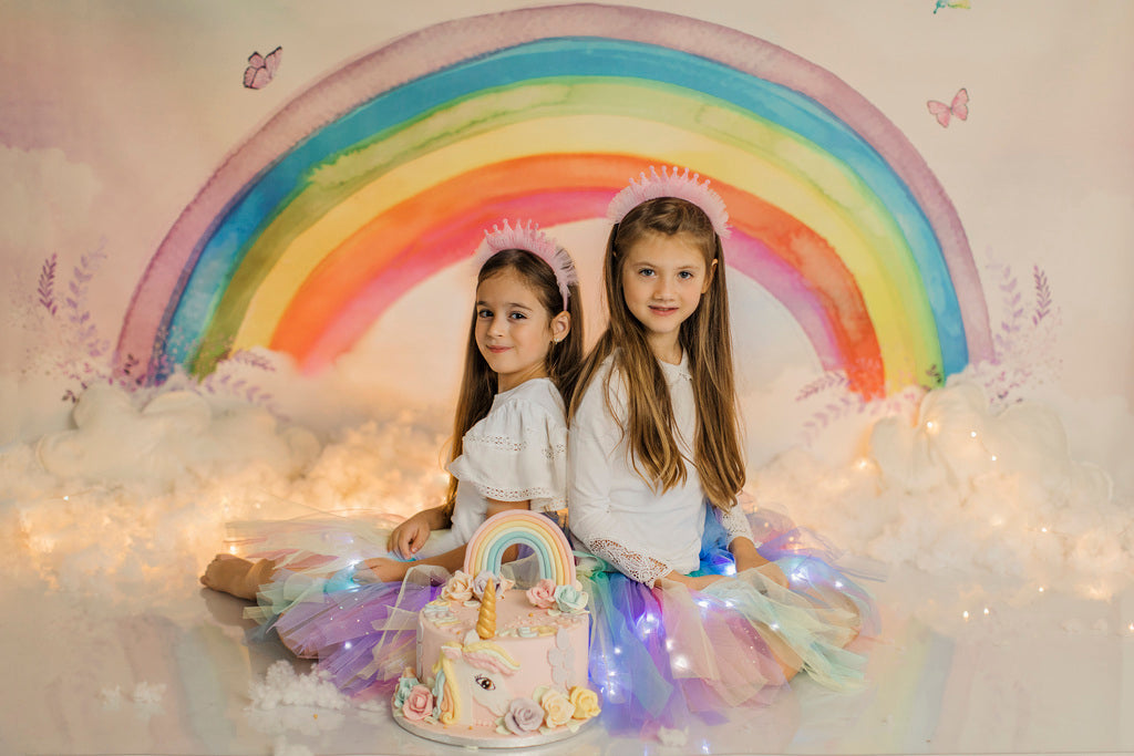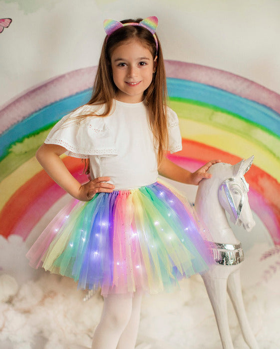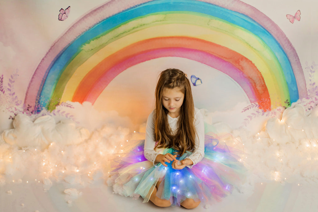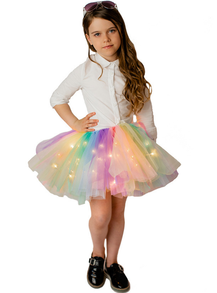 Un mix de tulle moale lila, roz, galben pai, bleu și vernil, ce formează curcubeul pastelat adorat de fetițe!